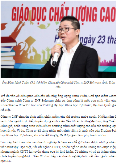 12月23日、ベトナムの科学&生活新聞(Báo KHOA HỌC & ĐỜI SỐNG)主催のトークショー“Giáo dục chất lượng cao – Cánh cửa thành công(ハイレベル教育―成功の扉)”に2NFソフトウェア取締役会長、ダン ミン トゥアンがゲストとして参加しました。