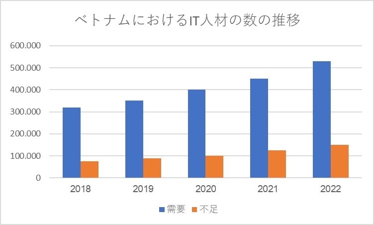 このような状況が生まれている背景には、ベトナム国内におけるIT教育が、社会発展における需要、特に高い技術力をもつ技術者教育の需要を満たせていないことが挙げられます。来たる2022年は更に多くのIT人材が必要となりますが、需要53万人に対して供給は38万人程度にとどまると予想され、技術者不足がより色濃く目立ってきそうです。