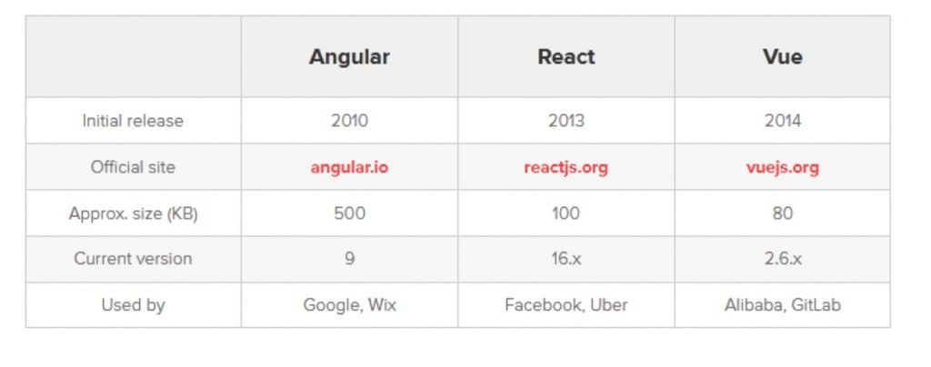 人気のフロントエンドJavaScriptフレームワーク:AngularJS対ReactJS対VueJS