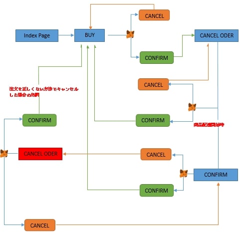 - 店舗から商品配達の通知が届いてないうち、買い手は注文のキャンセルができ、SmartContractで保存されている代金を全て返却してもらえます。