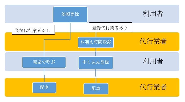 ② 利用者が依頼条件(迎えに来る時間、現在地、現在地の目印となる建物など、目的地)を入力する。