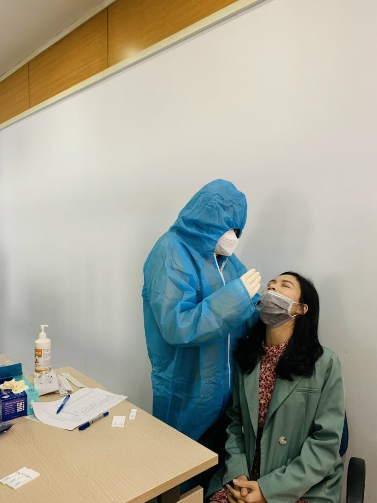 Để đảm bảo an toàn cho mọi người, trước khi diễn ra chương trình tất niên, toàn thể cán bộ nhân viên Công ty đều được test nhanh Covid -19.
